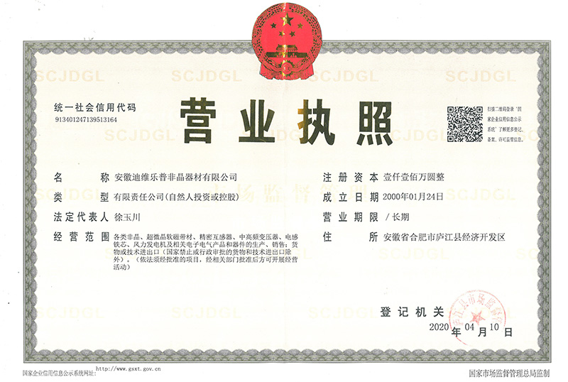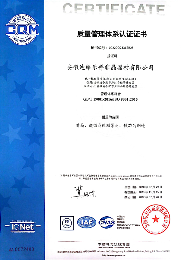 為響應國家標準化發(fā)展綱要,推動高質(zhì)量發(fā)展,建設(shè)社會主義現(xiàn)代化國家。 安徽迪維樂普非晶器材有限公司、非晶合金電力互感器材料研究中心;為促進標 準化發(fā)展、提升標準化水平;實現(xiàn)企業(yè)有序發(fā)展、有規(guī)可循;產(chǎn)品質(zhì)量有據(jù)可依、 方便客戶甄別選用,特制定本企業(yè)質(zhì)量標準。